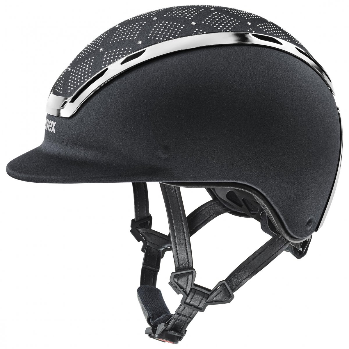 uvex exxeed flash är prydd med mer än 3000 original Swarovski®-kristaller och har en högblank ram med pianolackskänsla – en hjälm som verkligen sticker ut. Den unika designen kombineras med kompromisslöst skydd tack vare beprövad hardshell-teknologi. Med sin exklusiva satinfinish i svart eller marinblå är den en självklar del av vår premiumkollektion.